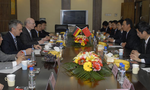 煙草在線紅云紅河消息 3月12日,德國(guó)虹霓公司CEO索姆·克里斯托弗、遠(yuǎn)東董事總經(jīng)理米羅斯、遠(yuǎn)東總經(jīng)理吳振寰一行到紅云紅河集團(tuán)訪問(wèn),與集團(tuán)副總裁武怡就集團(tuán)技術(shù)改造工作進(jìn)行了交流,雙方均表達(dá)了繼續(xù)加強(qiáng)合作的良好意愿。