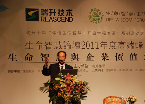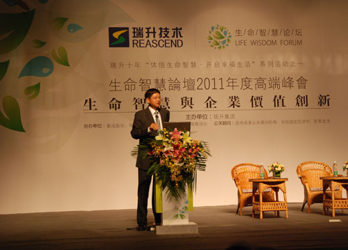 作為本次論壇主辦方,瑞升集團(tuán)認(rèn)為“生命智慧”也許是開啟幸福之門的鑰匙。自20世紀(jì)以來,科學(xué)技術(shù)的進(jìn)步使社會(huì)生產(chǎn)力發(fā)展達(dá)到了前所未有的水平,人類對物質(zhì)世界和生命現(xiàn)象的認(rèn)識也提高到前所未有的程度。但與此同時(shí),資源、環(huán)境問題也日益突顯,人類與自然的沖突愈加劇烈,人類正面臨著未來生存的巨大挑戰(zhàn)。如何來面對這一人類的危機(jī),除了一系列的措施與技術(shù)外,需要一種全新的理念——生命智慧。