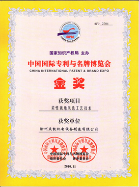 徐州眾凱公司由徐州市科技局組織本市重點(diǎn)自主創(chuàng)新技術(shù)產(chǎn)品組團(tuán)參加了本次國際專利與名牌博覽會(huì)。在本次展會(huì)上,徐州眾凱公司擁有完全自主知識(shí)產(chǎn)權(quán)的創(chuàng)新技術(shù)產(chǎn)品---柔性就地風(fēng)選工藝技術(shù)榮獲“金獎(jiǎng)”。徐州眾凱公司同時(shí)獲得“專利優(yōu)秀企業(yè)”稱號(hào),并獲得證書及獎(jiǎng)杯。