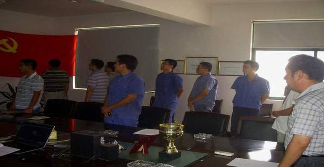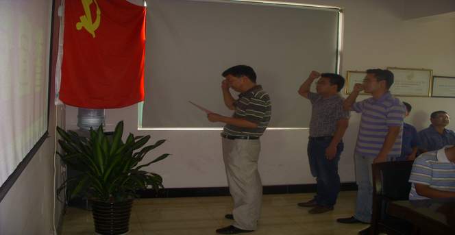 在紀(jì)念中國共產(chǎn)黨成立九十一周年之際,徐州眾凱公司黨支部于7月23日下午,為兩名預(yù)備黨員:楊進成、楊鈺程,舉行隆重的入黨宣誓儀式。宣誓儀式在雄壯的《國際歌》聲中開始。