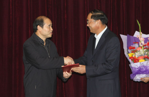 葛世榮校長(zhǎng)為吳吟副局長(zhǎng)頒發(fā)兼職教授聘書