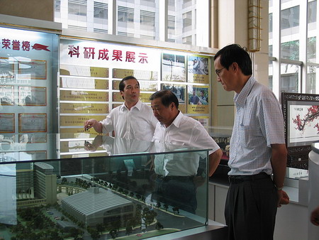 (閆亞明院長向客人介紹我院科技成果展覽)