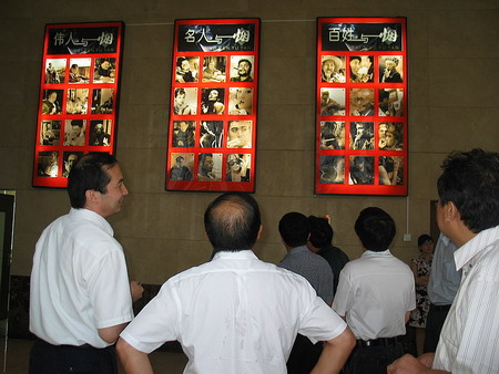 閆亞明院長首先陪同客人參觀了鄭州院科技成果展覽以及“名人與煙”、“百姓與煙”等宣傳畫,來訪客人們在宣傳畫前駐足良久,饒有興趣地爭相猜測名人的名字。周昌貢總經(jīng)理表示,這個創(chuàng)意非常好,反映了煙民的普遍性,看到他們,我們的工作才更有動力。
