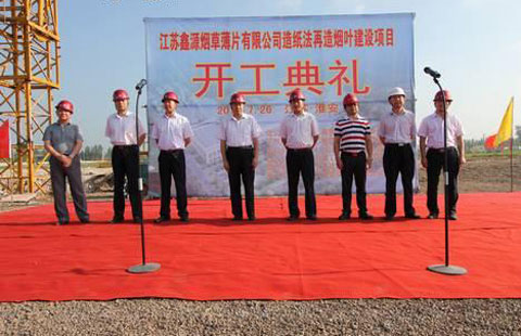 煙草在線據(jù)江蘇中煙消息報(bào)道 7月26日上午,江蘇鑫源煙草薄片有限公司造紙法再造煙葉項(xiàng)目施工現(xiàn)場(chǎng)彩旗飄飄、鞭炮齊鳴、機(jī)聲隆隆,項(xiàng)目土建一標(biāo)段正式開工,揭開了土建工程建設(shè)的序幕。鑫源公司全體干部職工、項(xiàng)目各參建方代表一同參加了開工儀式。