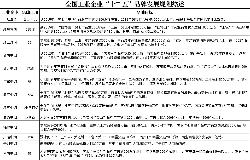 優(yōu)化配置、重整資源。對于那些已經(jīng)發(fā)布“十二五”期間品牌規(guī)劃的工業(yè)企業(yè),根據(jù)發(fā)布的品牌規(guī)劃與企業(yè)目前的體量規(guī)模對比測算,除少數(shù)工業(yè)企業(yè),如:山東中煙、安徽中煙、河南中煙、川渝中煙等,通過企業(yè)內(nèi)部進一步的品牌整合之后,依靠企業(yè)自身現(xiàn)有計劃資源即能滿足品牌發(fā)展需要,包括湖南中煙、紅塔集團、湖北中煙等“大”企業(yè)在內(nèi),絕大部分工業(yè)企業(yè)都必須尋求其它途徑來解決計劃資源的缺口問題。實際上,在明確提出532、461規(guī)劃之前,行業(yè)已經(jīng)形成了一定規(guī)模的品牌定向整合,國家局也出臺了品牌定向整合的相關配套措施,2009年全國定向整合品牌產(chǎn)量達到447萬箱,涉及16個品牌。但是,定向整合已經(jīng)出現(xiàn)了較為明顯的執(zhí)行瓶頸:一是缺乏長效的運行機制,品牌輸入與輸出方之間運行還不夠規(guī)范,合作關系并不牢固;二是品牌整合動力不足,品牌輸出方不愿意拿出高結構產(chǎn)品,輸入方對低結構產(chǎn)品積極性不高;三是異地加工的質(zhì)量控制仍有不足,產(chǎn)品均質(zhì)化加工能力還需要加強。
