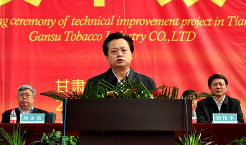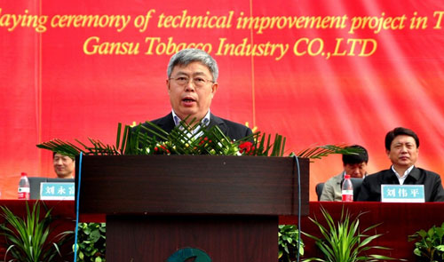 劉永富在奠基儀式上致辭,他說,國家煙草專賣局決定實施天水卷煙廠易地技術(shù)改造項目工程,為甘肅煙草工業(yè)加快發(fā)展注入了強(qiáng)大動力。甘肅煙草工業(yè)有限責(zé)任公司要全面貫徹實施卷煙上水平戰(zhàn)略,落實樹品牌、做貢獻(xiàn)要求,加快工程建設(shè)進(jìn)度,加速技術(shù)創(chuàng)新能力,加強(qiáng)卷煙品牌建設(shè),科學(xué)管理,保證質(zhì)量,努力把天水卷煙廠建設(shè)成為技術(shù)、管理、產(chǎn)品、效益一流的優(yōu)秀企業(yè),促進(jìn)甘肅煙草工業(yè)在更高層次、更高水平取得更好更快的發(fā)展。天水市委、市政府和省直各有關(guān)部門,要全力關(guān)心支持這個項目,及時解決項目建設(shè)中存在的困難和問題,確保項目早日建成投產(chǎn)。