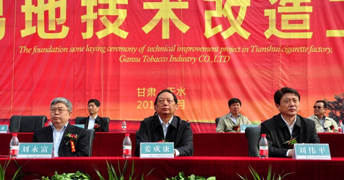 國家煙草專賣局黨組書記、局長、總經(jīng)理姜成康 省委副書記、省長劉偉平出席奠基儀式