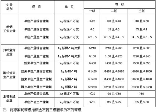 《煙草工業(yè)企業(yè)能源消耗》標(biāo)準(zhǔn)的能耗指標(biāo)